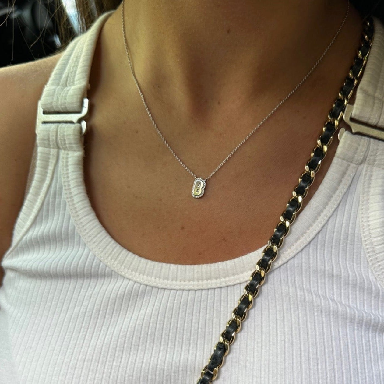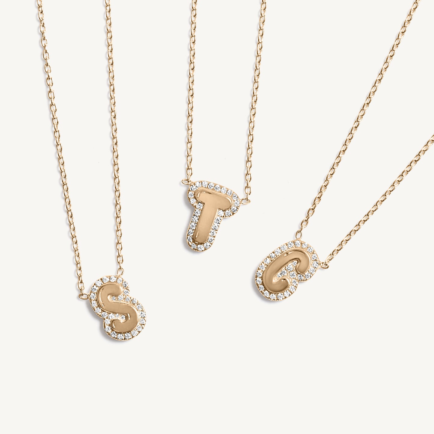 The bubble diamond outline enhances the brilliance of the initial of your choice, adding a playful yet refined touch to your everyday look. Designed to be a staple in your jewellery wardrobe, this necklace seamlessly blends personalisation with timeless sophistication—perfect for layering or wearing solo as a signature piece.
