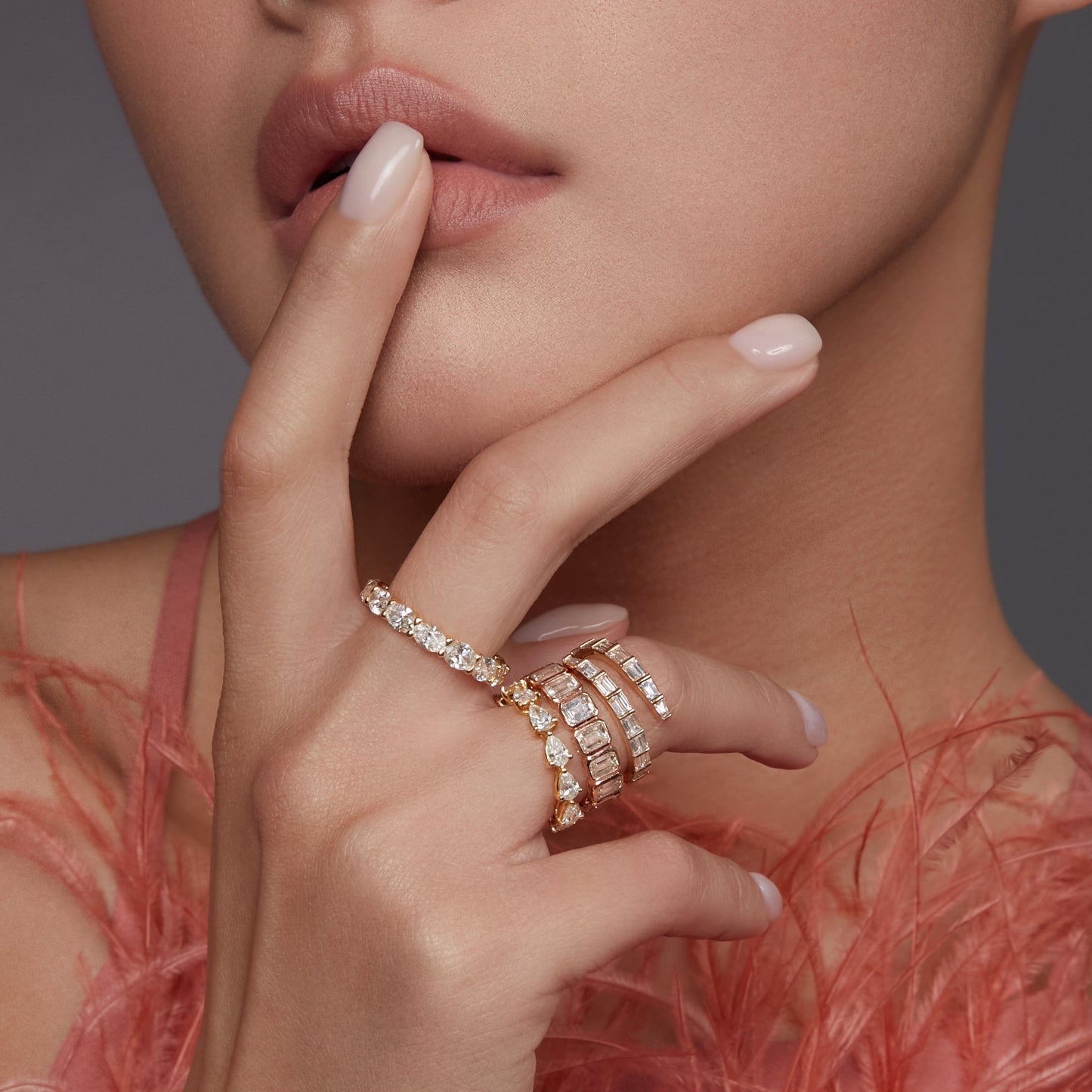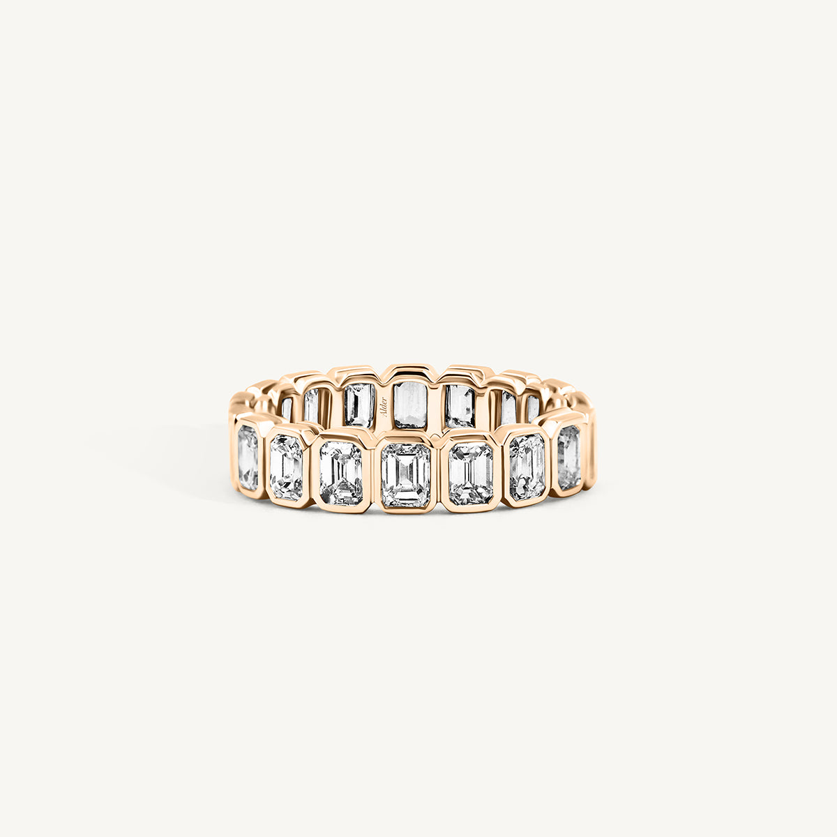 A modern take on a timeless classic, the Emerald Bezel Eternity Band features perfectly cut emerald diamonds, elegantly framed in a sleek bezel setting. Designed for seamless brilliance and durability, this ring offers a contemporary edge to a traditional eternity band.