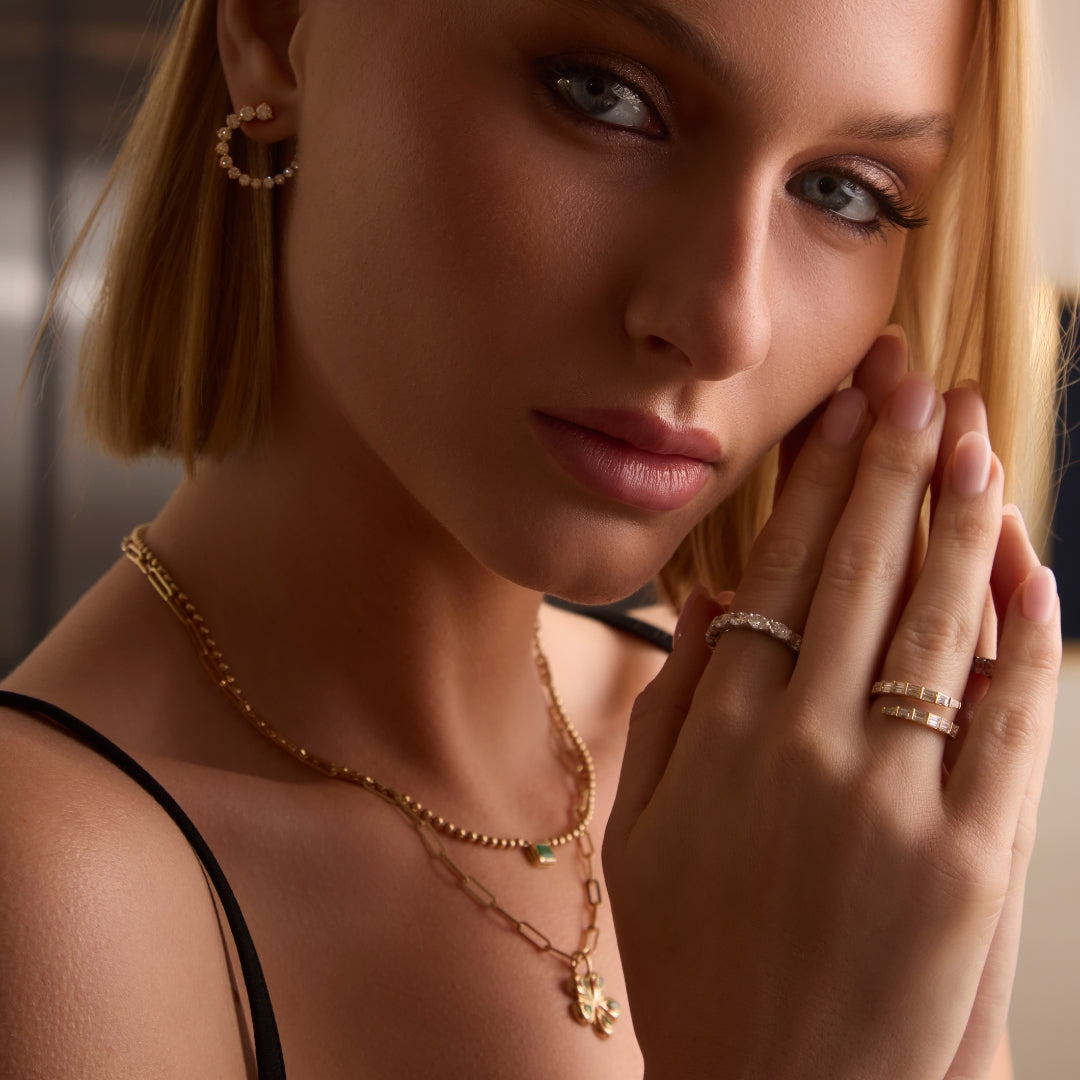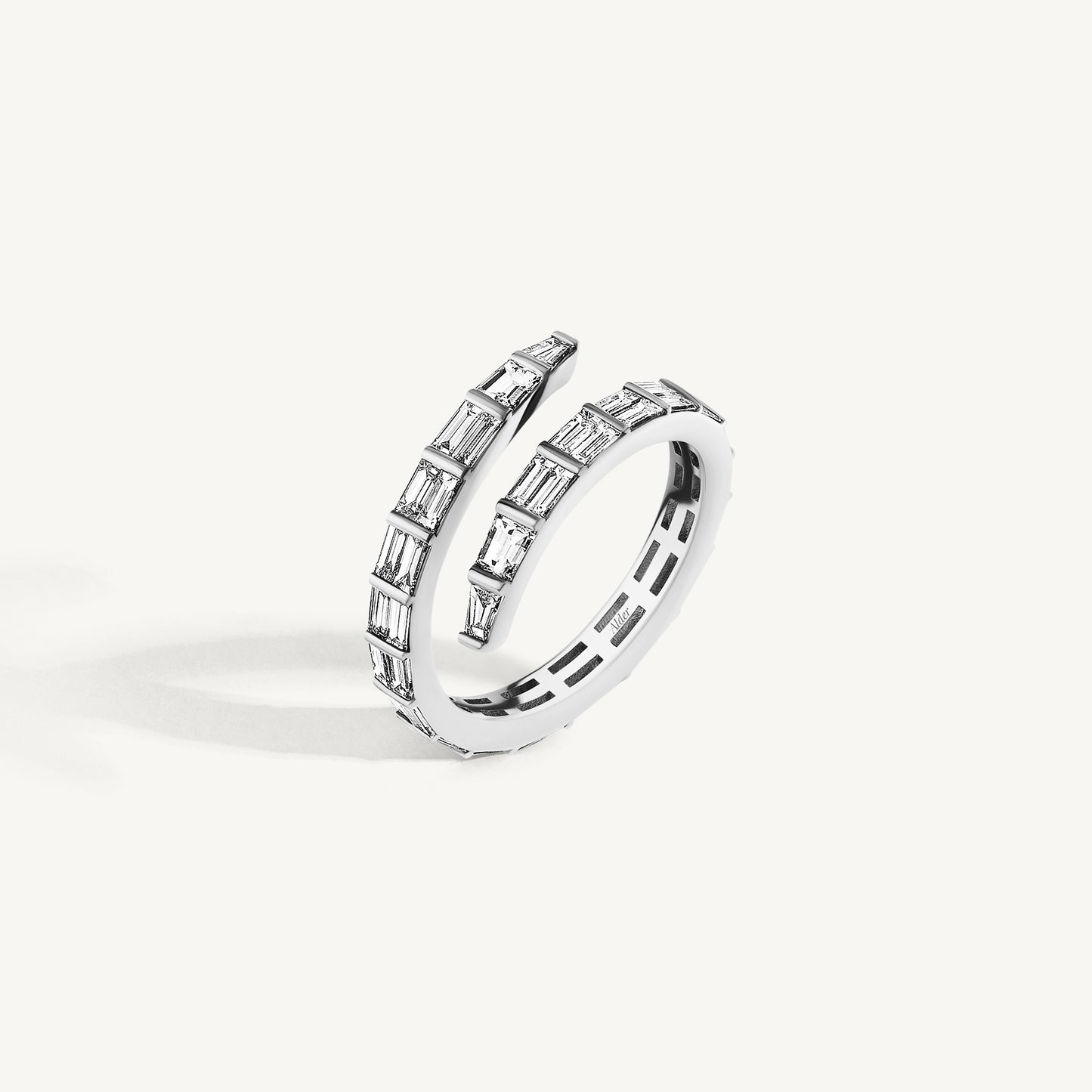 A sleek and sophisticated interpretation of a timeless design, the Baguette Bypass Diamond Ring showcases a stunning arrangement of graduating baguette-cut diamonds, elegantly flowing along the contours of the ring. The bypass silhouette adds a contemporary edge, making this piece a bold yet refined statement of modern luxury.